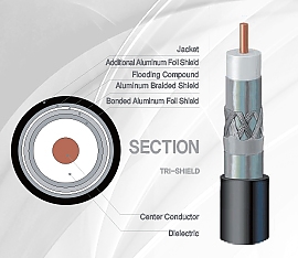 14 AWG copper clad steel center conductor, gas foamed polyethylene